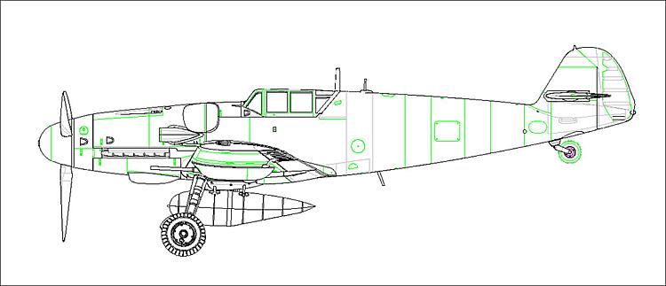 Plastikmodellbausatz eines deutschen WWII Jagdflugzeugs mit 70 Teilen. Länge gebaut 186,5 mm / Flügelspannweite 206,8 mm