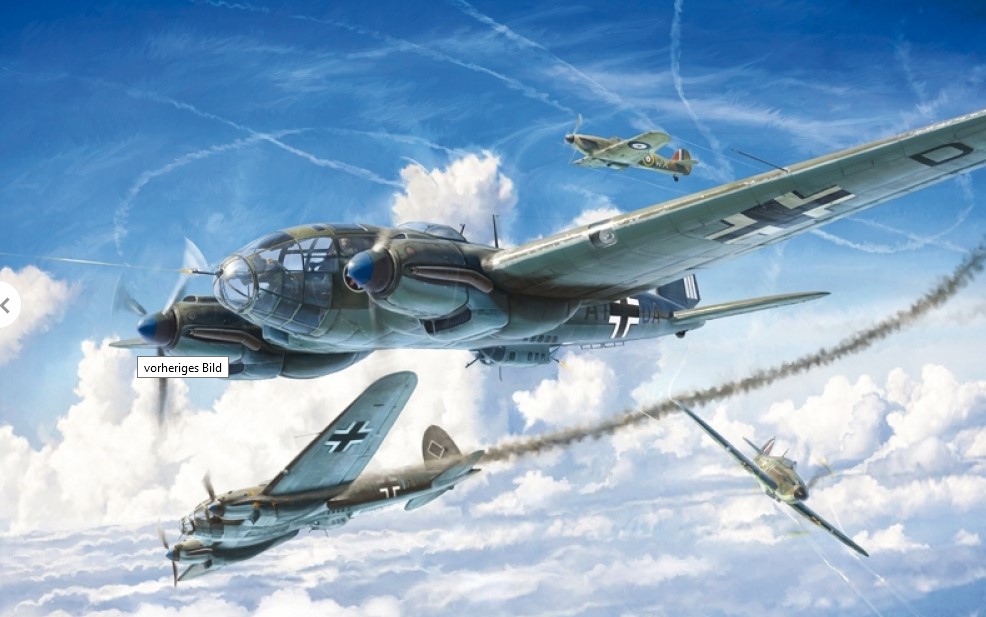 Der mittlere Tiefdecker Bomber Heinkel He-111 bildete in den ersten Jahren des Zweiten Weltkriegs das Rückgrat der Bombenabwurf Divisionen der Luftwaffe. Er zeichnete sich durch die Einführung von zwei Triebwerken aus, wie viele andere Flugzeuge der damaligen Zeit mit ähnlichen Eigenschaften, aber auch durch die Einführung innovativer Lösungen wie der Ganz Metallstruktur. Das Flugzeug war mit seinen zwei Motoren Jumo 211 in der Lage, eine Höchstgeschwindigkeit von 440 km/h zu erreichen und in seinem internen Laderaum über 2.000 kg Bomben zu transportieren. Leicht erkennbar an der großen verglasten Flugzeugnase, dem Flügelprofil und den Heckrindern, wurde er von der Luftwaffe bei der England Schlacht im Jahr 1940 häufig sowohl für Bombenangriffe am Tag als auch für nächtliche ?Überfälle" eingesetzt, die Städte sowie Industriegebiete schwer trafen. Der Heinkel He-111 wurde regelmäßig weiterentwickelt und geändert, war aber bereits im Verlauf des Krieges bald veraltet.