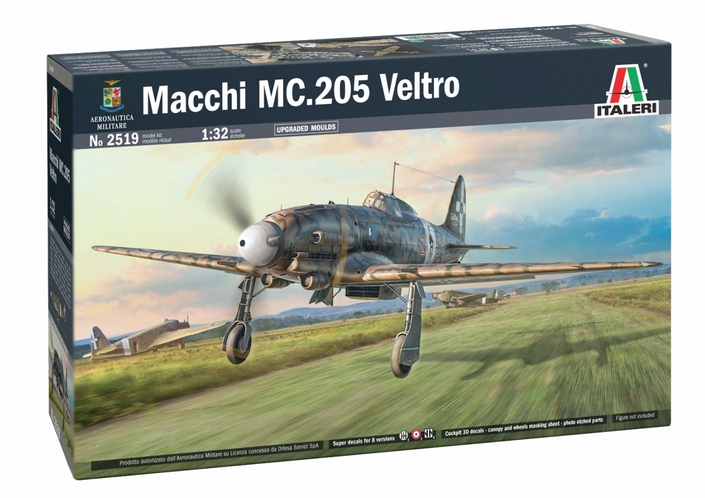 Der Macchi M.C. 205 Veltro wird von vielen als das beste italienische Jagdflugzeug des Zweiten Weltkriegs angesehen. Die Weiterentwicklung des 'Folgore' behielt das exzellente aerodynamische Design seines Vorgängers bei und wurde, wie die anderen Jagdflugzeuge der ?Serie 5", mit dem deutschen Daimler-Benz DB605-Motor ausgestattet. Der leistungsstarke 12-Zylinder-V-Motor, der auch in Lizenz von Fiat hergestellt wurde, ermöglichte es dem Veltro, eine Höchstgeschwindigkeit von 640 km/h zu erreichen. Schnell, wendig und gut bewaffnet, mit zwei 12,7-mm-Maschinengewehren in der Nase und zwei 20-mm-Kanonen in den Flügeln, war er in der Lage, auf Augenhöhe mit den besten alliierten Jagdflugzeugen der Zeit wie dem amerikanischen P-51 Mustang zu kämpfen. Er kam in den ersten Monaten des Jahres 1943 bei der Regia Aeronautica in Dienst. Nach dem Waffenstillstand am 8. September wurde er bis zum Ende des Konflikts sowohl von den Flugeinheiten der Italienischen Sozialrepublik als auch von denen der Cobelligeranten-Luftwaffe eingesetzt.