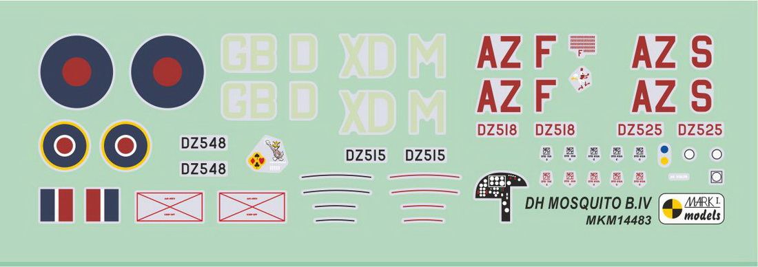 The Mosquito B Mk.IV was a day and night bomber variant, whose prototype first flew in September 1941. Some 300 aircraft were built (incl. Srs.I a/c); Series II model entered service in May 1942. It was a two-seat, twin-engine, mid-wing monoplane, of a composite wood construction, fitted with a retractable undercarriage. The crew was seated under conventional canopy and for bombing a glazed nose was provided. It was powered by two Merlin in-line engines turning narrow three-bladed propellers. Its internal bombload was 2,000 lb (908 kg), while a provision was also made for two 50-gal (227 1itre) underwing drop tanks or two 250lb bombs.