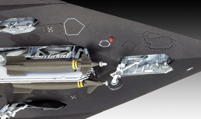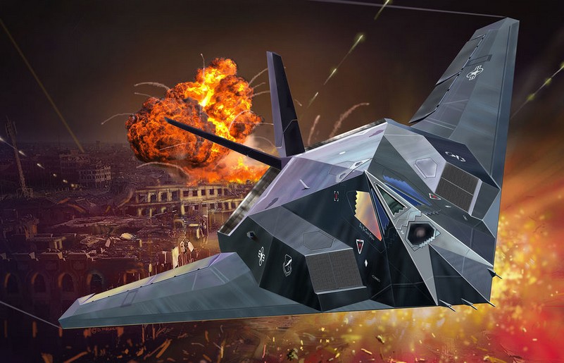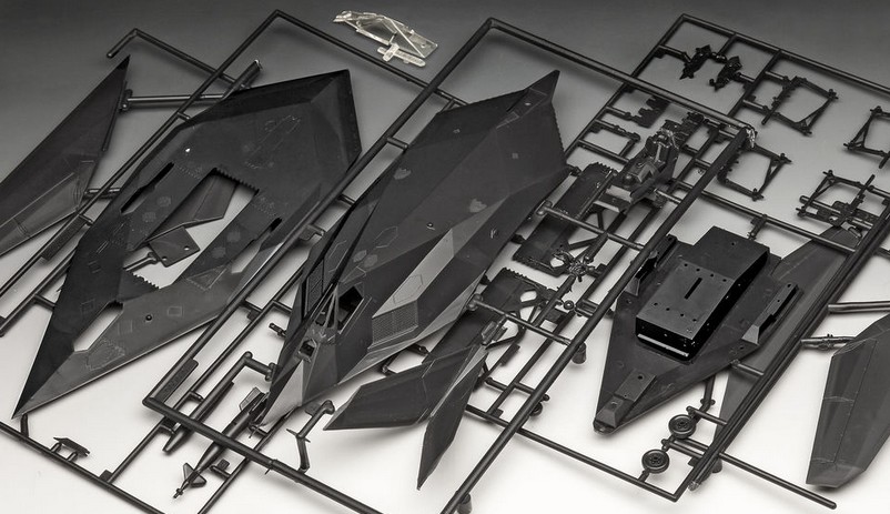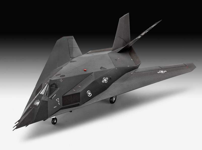 Einfacher Klebebausatz der Lockheed F-117, dem ersten Tarnkappenjäger der Welt, welcher hauptsächlich im Nachtangriff eingesetzt wird. Der Facettenaufbau lassen die F-117 vom Radar unentdeckt bleiben.