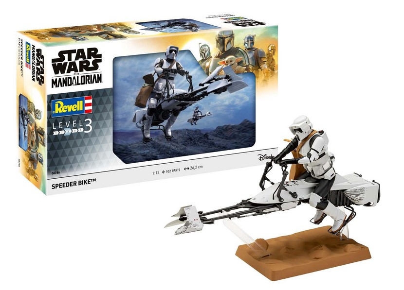 Das von dem Unternehmen Aratech gefertigte Speeder Bike war der wichtigste Repulsor-Schlitten der imperialen Truppen. Es kam vorwiegend zu Aufklärungszwecken zum Einsatz. Das leichte und extrem manövrierfähige Speeder Bike erreichte eine Geschwindigkeit von knapp 500 km/h. Es wird in der zweiten Staffel der bekannten Serie "The Mandalorian" vom titelgebenden Mandalorianer genutzt. Das ikonische Aussehen erhöht den Wiedererkennungswert bei den Fans der Serie. . Mehrteilige Scout Trooper Figur . Wahlweise mit oder ohne Grogu Figur baubar . Mehrteiliger 74-Z Düsen-Schlitten . Display Ständer enthalten
