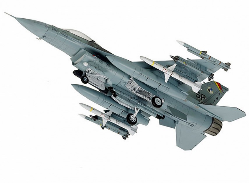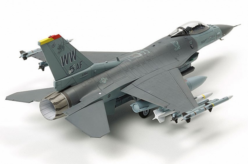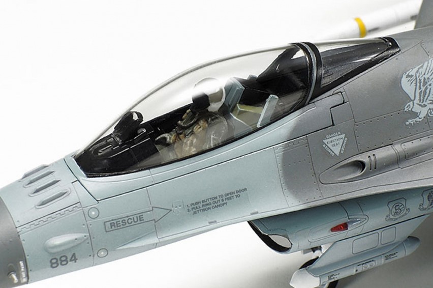 Das Standmodell ist eine Nachempfindung des US Fighting Falcon F-16CJ, welcher durch seine extreme Vielseitigkeit in Luft-Luft, als auch in Luft-Boden-Missionen eingesetzt werden konnte. Dieses Flugzeug wurde zum Eckpfeiler der US- Luftwaffe und wurde seit 1991 eingesetzt, wobei der F-16CJ über Radargegenmaßnahmen verfügt. Außerdem wurden in diesem Modell die Nachtjäger-funktionen noch weiter erweitert. Die TAMIYA Modellbaukasten-version besticht durch Passgenauigkeit als auch Detailtreue.