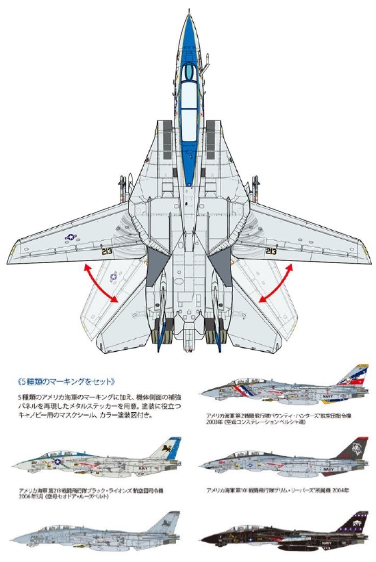 - Das Modell wird mit zwei sitzenden Pilotenfiguren und fünf Markierungsoptionen der US Navy geliefert.