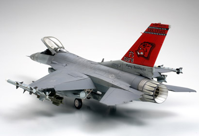 Model represents the F-16C [Block 25/32]. New parts accurately reproduce the correct engine nozzle and smaller air intake that correspond to Pratt & Whitney powered F-16s. Main landing gear and gear well covers also depicted with new parts. Wing reinforcement plates for Block 32 recreated with phot etch parts (sold seperatley). Extensive weapons set features AIM-9L/M and AIM-9X sidewinders, AIM-120 AMRAAM, wing and centerline fuel tanks, and LITENING II targeting pod. New parts for GBU-12 laser-guided bombs feature clear parts to depict the laser guidance package for a more realistic finish. New ordinance racks on the wings accurately match their respective weapons. 1 pilot figure included and 3 sets of U.S. Air National Guard markings included. Add ITEM 12621 F-16 Fighting Falcon Detail Up Parts Set for the ultimate finish.