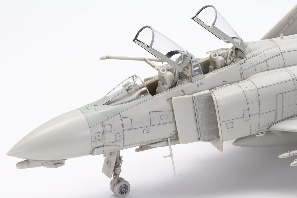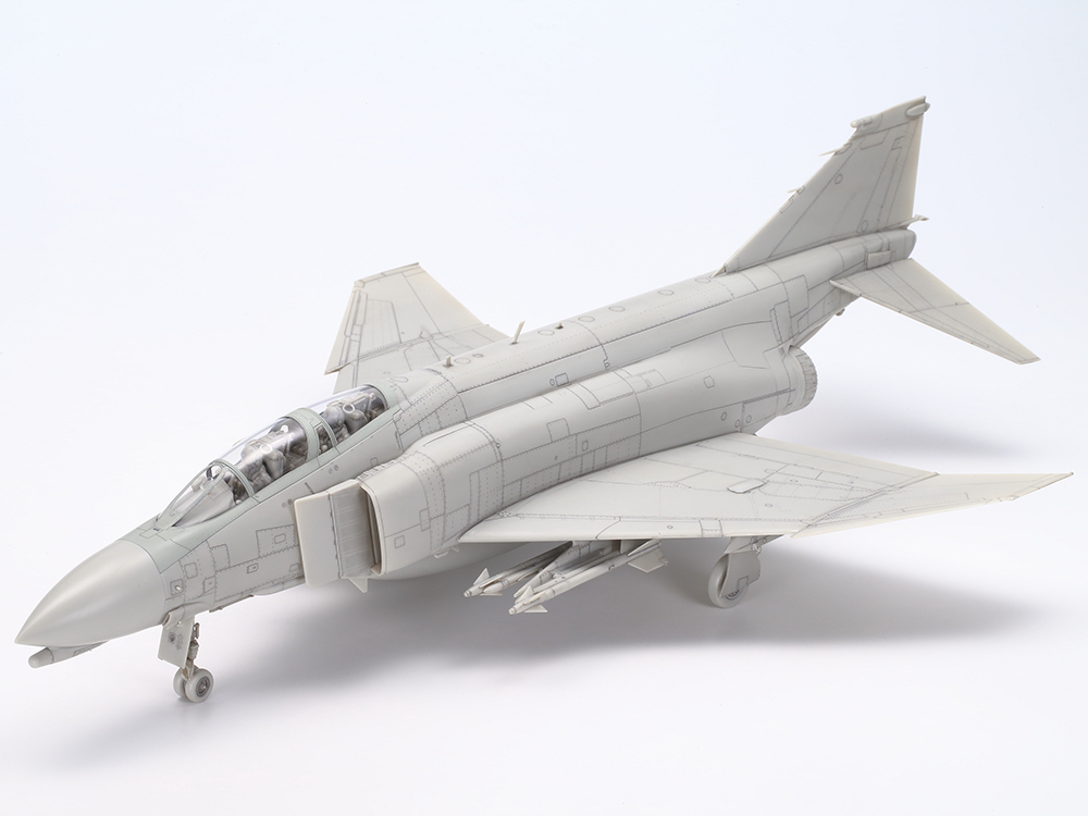 Die Tragflächenstruktur (Panel-Lines/Nieten) der Originalmaschine wurde detailgetreu im Modell nachempfunden. Die äußeren Flügel wurden für die Verwendung auf Flugzeugträgern aufgestellt (platzsparend), das rechte und das linke Höhenleitwerk bewegen sich gemeinsam. Die Cockpitkanzel kann geöffnet werden, auch Betankungssonde und Boarding-Leiter sind funktional. Zum Lieferumfang gehören eine ausführliche Bauanleitung, eine Lackieranleitung, verschiedene Abziehbilder (u.a. 'Screaming Eagles'-Dekors) und Hintergrundinformationen zur Geschichte der Phantom II.