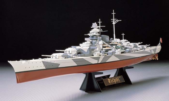 Das Standmodell ist eine Nachempfindung des Tirpitz, welcher für alliierte Konvois eine ständige Bedrohung darstellte. Die Alliierten verbrauchten beträchtliche Ressourcen, um das Schwesterschiff der Bismarck auszuschalten. Letztendlich wurde die Tirpitz von der Royal Airforce bombardiert, woraufhin sie sank. Die Unterschiede zu ihrem Schwesterschiff sind in dem TAMIYA Modellbaukasten detailliert dargestellt, so sind beispielsweise die vierfachen Torpedorohre charakteristisch für die Tirpitz.