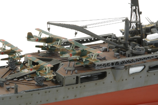 Das Standmodell ist eine Nachempfindung des japanischen schweren Kreuzers Chikuma, welcher der letzte während des zweiten Weltkriegs erbaute Kreuzer war und wurde 1939 als zweites Schiff der Tonklasse hergestellt. Aufgrund des Designs war eine Höchstgeschwindigkeit von 35 Knoten und eine große Reichweite möglich. Während des Pearl Harbor-Angriffs im Dezember 1941 führten ihre Wasserflugzeuge vor dem Angriff eine Aufklärung über Pearl Harbor durch, was wesentlich zum Erfolg der IJN bei der Operation beitrug. Während der Schlacht am Golf von Leyte im Oktober 1944 war sie das Flaggschiff der Flotte von Admiral Kurita und trug zum Untergang der USS Gambier Bay bei, wurde jedoch durch Torpedos beschädigt und vor der Küste der Insel Samar versenkt.