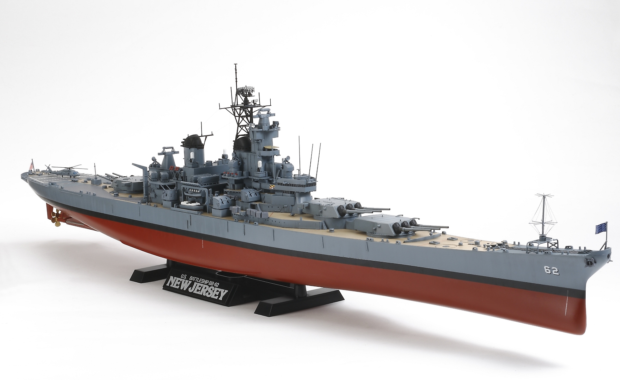 Das Standmodell ist eine Nachempfindung des US Kampfschiffs New Jersey BB-62. Die New Jersey war das zweite Schiff der lowa-Klasse und wurde 1943 fertiggestellt. Das US Schlachtschiff nahm an einer Vielzahl an Missionen während des zweiten Weltkriegs teil. Die New Jersey diente bis 1991. Die TAMIYA Modellbaukastenversion besticht durch hohe Passgenauigkeit als auch durch detailreiche Gestaltung.