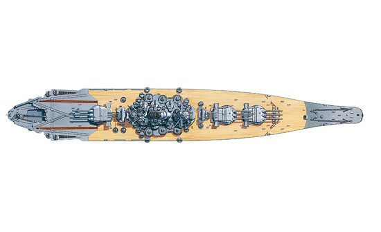 Das Standmodell ist eine Nachempfindung des größten Schlachtschiffs, welches jemals gebaut wurde und aus der Yamato-Klasse stammte, mit dem Namen Musashi. Die 1942 fertiggestellte Musashi nahm an verschiedenen Kampagnen teil, bevor sie schließlich in der Schlacht am Golf von Leyte ihrem Schicksal durch Flugzeuge der US-Marine erlegen war. Die TAMIYA Modellbau-kastenversion besticht durch Passgenauigkeit als auch durch detailreiche Wiedergabe wie beispielsweise eine Flugabwehrsuite, welche mit zahlreichen einzelnen 25-mm-Kanonen auf dem Hauptdeck ausgestattet war.