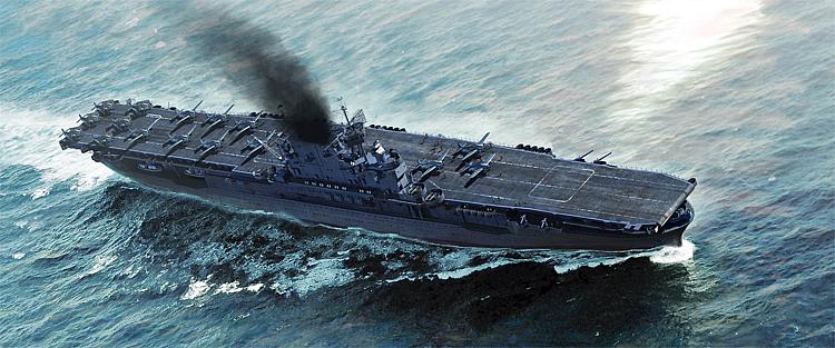 Plastikmodellbausatz eines US-amerikanischen Flugzeugträgers aus den 1930er Jahren mit 390 Teilen und Photoätzteilen sowie 3 Flugzeugen. Länge gebaut 360,2 mm / Durchmesser 48,5 mm.