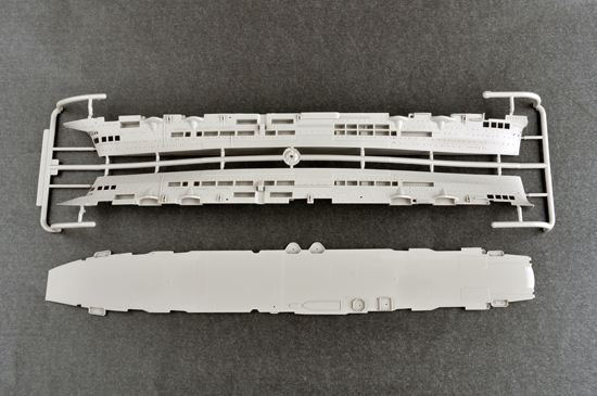 Plastikmodellbausatz eines britischen Flugzeugträgers aus den 1930er Jahren mit 310 Teilen, Photoätzteilen, Ständer und 3 Flugzeugen. Länge gebaut 348,2 mm / Durchmesser 41,2 mm.
