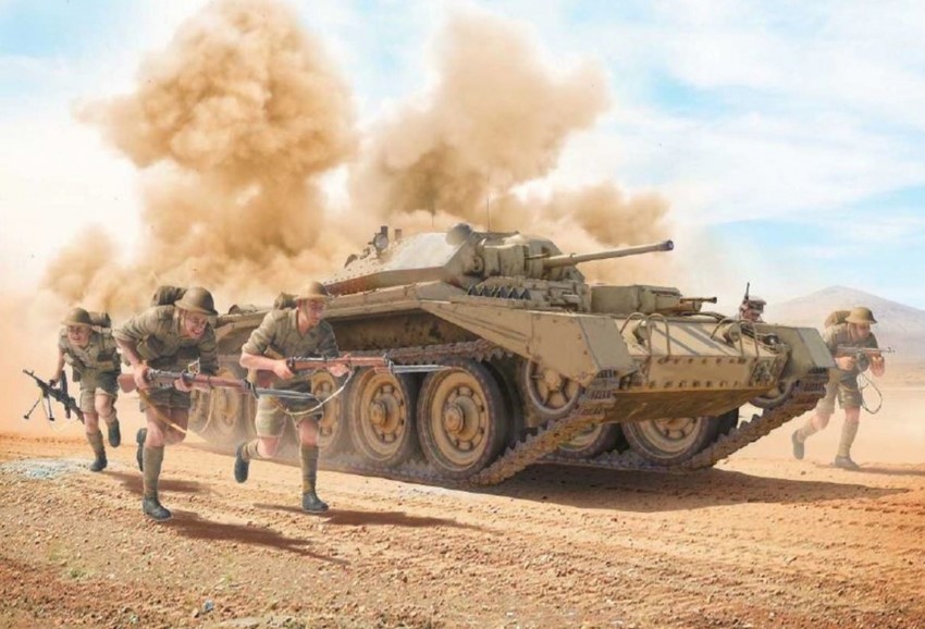 Designed at the beginning of the Second World War, the Crusader was one of the most important British "Cruiser" tanks reaching a production of over 5,000 units. Equipped with Christie suspension with large diameter rolling wheels, the Crusader possessed remarkable driving skills on rough terrain. The first versions of Mk. I and Mk. II were armed with a 2 pdr. cannon, later replaced by the more powerful 6 pdr. cannon in the Mk.III version. Lacking adequate armor against enemy fire, it was also very vulnerable to enemy mines and anti-tank guns, and its armament was often inadequate in front of similar German vehicles. However, when used in a coordinated way, they managed to achieve good results. The Crusaders Mk. II, with the arrival of the more powerful Mk.III, were already relegated to second-line duties at the time of the battle of El Alamein.