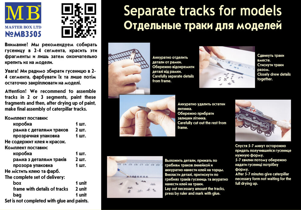 The tracks designed for the PzKfw 1A in 1933 were used successfully on other AFVs utilized by the Wehrmacht during the course of WWII. The tacks offered in this kit can easily be removed from the sprues, and do not require any special processing or fitting. Using these tracks, the modeler can achieve a higher degree of realism in recreating sags and slack between the return rollers. Battle damage can also be effectively simulated this way.