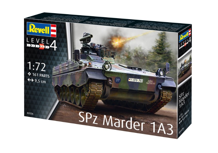 Modellbausatz des modernen Schützenpanzer Marder in der ab 1989 eingeführten, kampfwertgesteigerten 1A3 Variante.