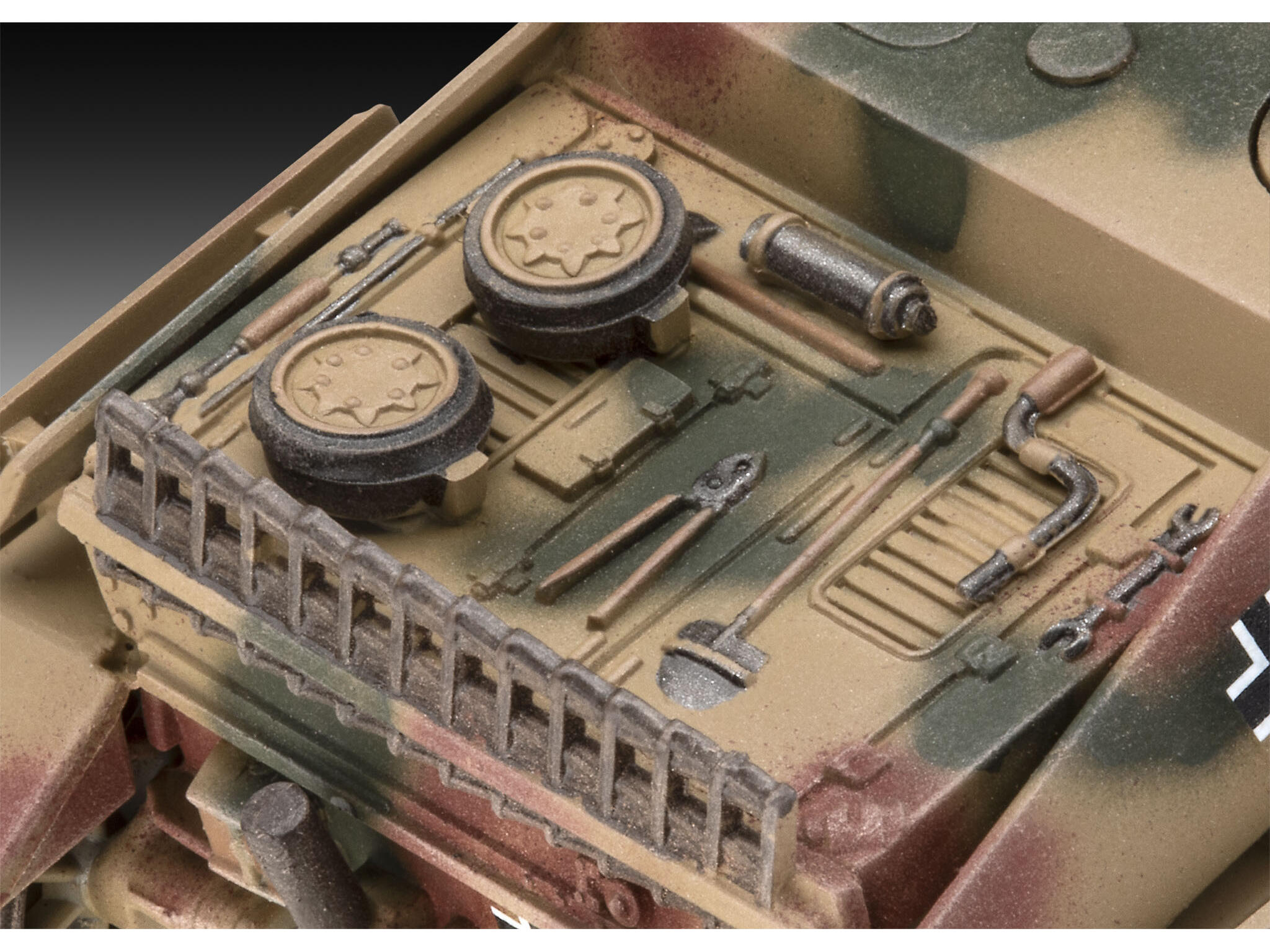 Modellbausatz des Jagdpanzers IV L/70, der den alliierten Streitkräften schweren Verlusten zufügte. Maßstab 1:76. 83 Teile. 112 mm Länge. Geeignet ab 12 Jahren.