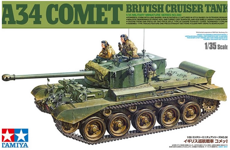 Tamiya is proud to welcome the Comet to the 1/35 Military Miniature Series for the first time! At the end of WWII, the British Army developed the Comet ? which became a base of later British Army tanks such as the Centurion - as a counter for the powerful German Tiger and Panther tanks. With the hull design based upon the structure of the existing armored cruiser tank Cromwell, the Comet employed a larger turret with a powerful 17-pounder gun. The Comet first saw action in the Operation Varsity in March 1945, and around 900 including ones produced after WWII were built.