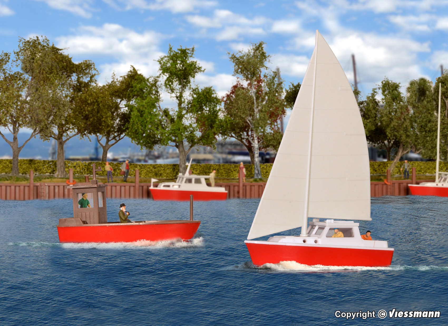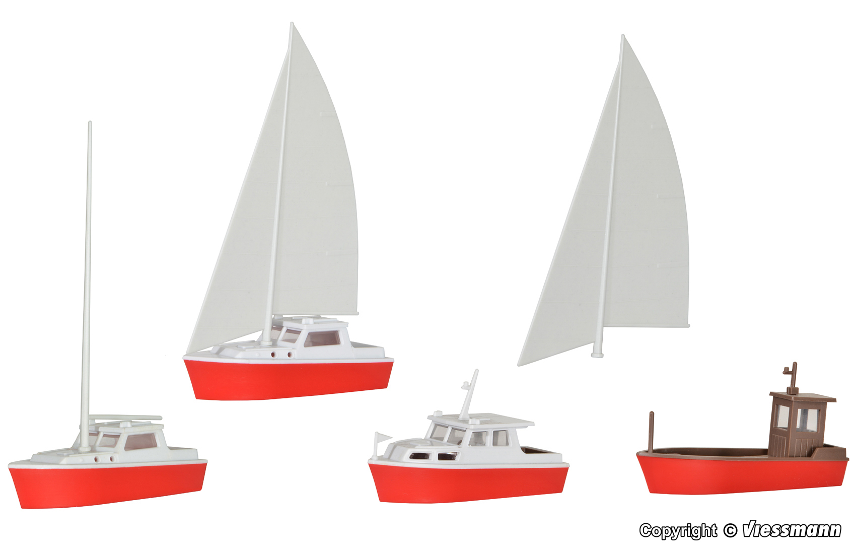 Bausatz. Das Set besteht aus 2 Segelbooten, Motorjacht und Arbeitsboot. Maße: L 7 x B 2,5 x H 4 ? 10,5 cm. Schwierigkeitsgrad: 2 (Fortgeschrittene)