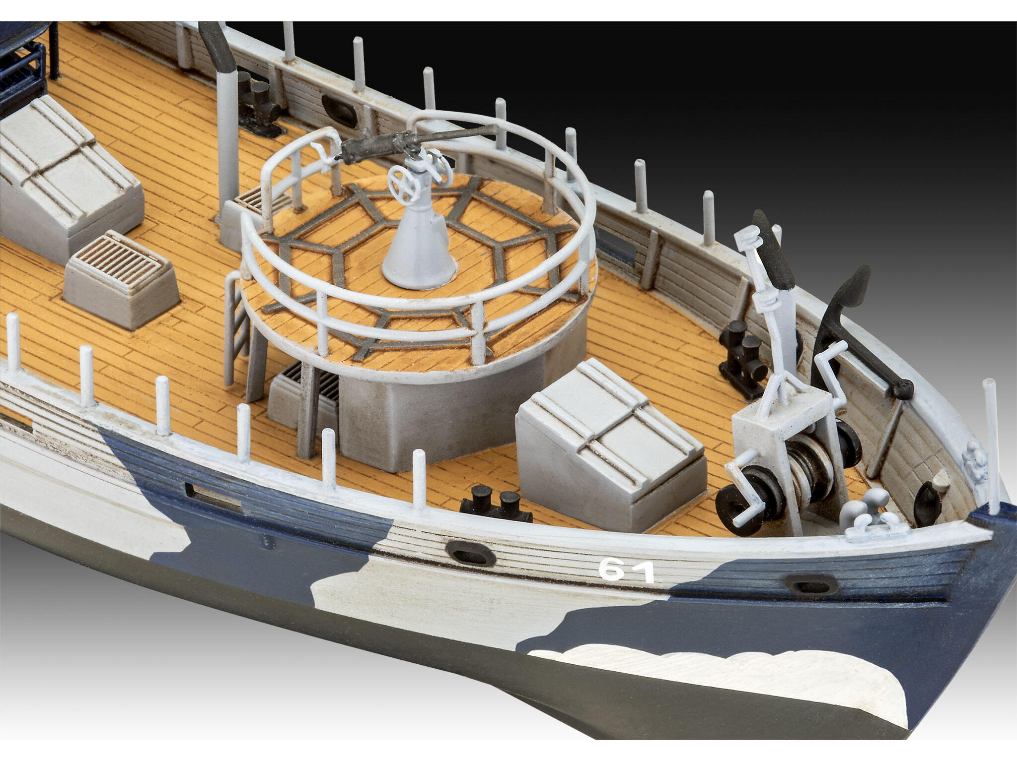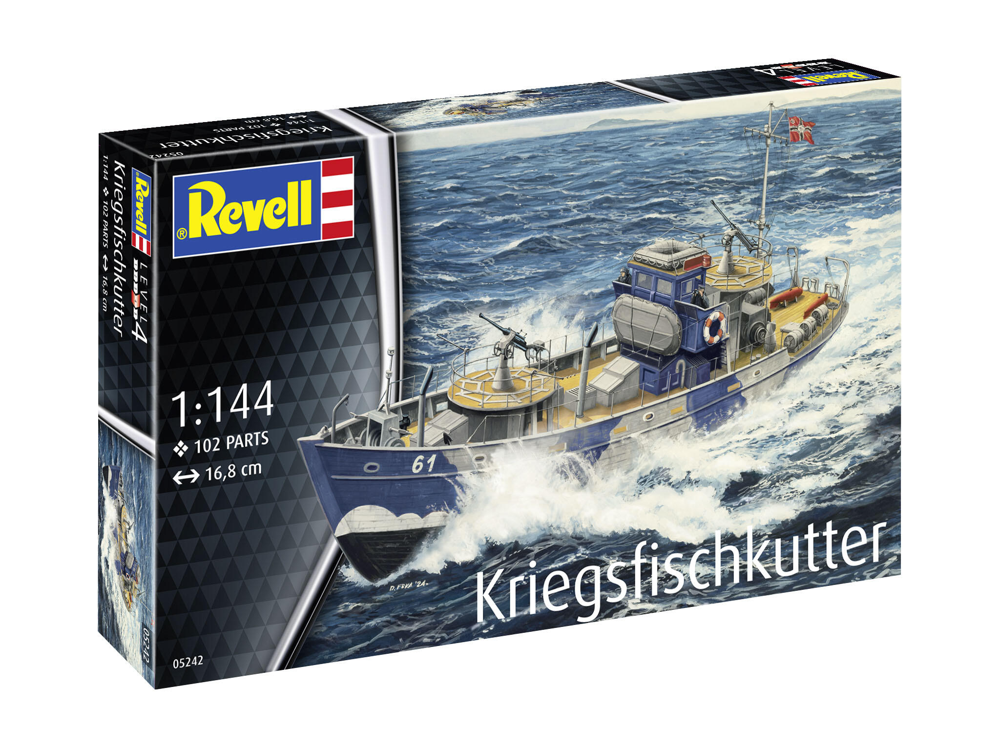 Modellbausatz des vielseitigen KFK (Kriegsfischkutter), Fischerboote, die im Zweiten Weltkrieg für militärische Zwecke umgerüstet wurden. Maßstab 1:144. 139 Teile. 168 mm Länge. Geeignet ab 12 Jahren.