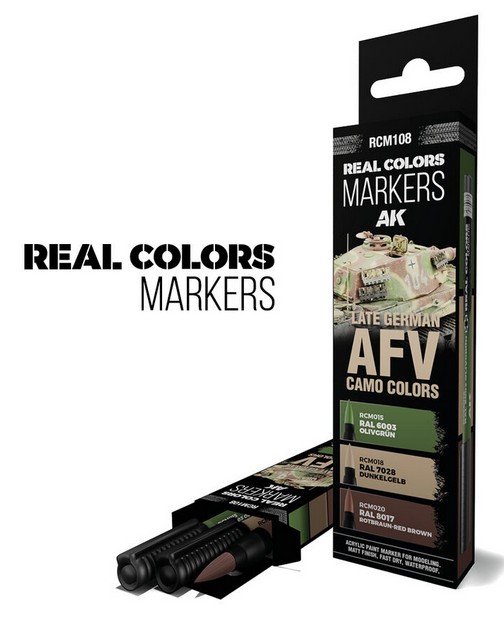 AK Interactive: LATE GERMAN AFV CAMO COLORS - SET 3 REAL COLORS MARKERS [5568339194]
