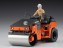 Plastikmodellbausatz einer modernen japanischen Straßenwalze mit 93 Teilen und Fahrerfigur. Länge gebaut 92 mm / Breite 40mm.