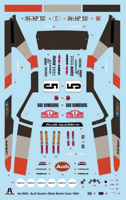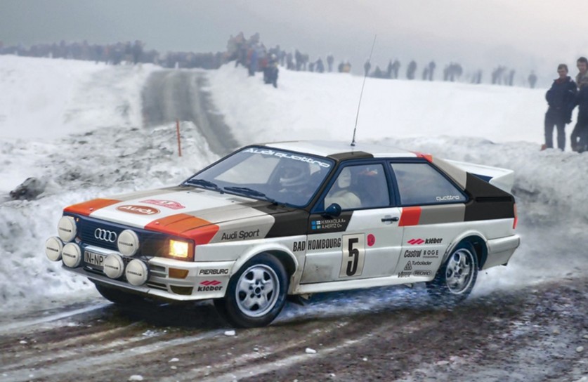 In 1980, during the Geneva Motor Show, the German car manufacturer presented to the public its new twodoor coupé called Audi Quattro. Produced for all the '80s the Italian name choosed by Audi (Quattro is the Italian word for "four") ine was pointed out the main feature and the most important selling point : the fourwheel drive. It was the first time that the 4x4 solution was adopted on a coupé with the goal to achieve high numbers in terms of production and sales on the market. The Audi Quattro was able to release good driving performance, thanks to its frontal longitudinal engine, and very good reliability on all type of road conditions. From the mass production a dedicated car for competitions was developed on 1981 and it debuted in the World Rally Championship, achieving good results. The success of "Quattro" cars is still existing today in fact the name has become a real "brand" that identifies all the range of Audi's four wheel drive production.