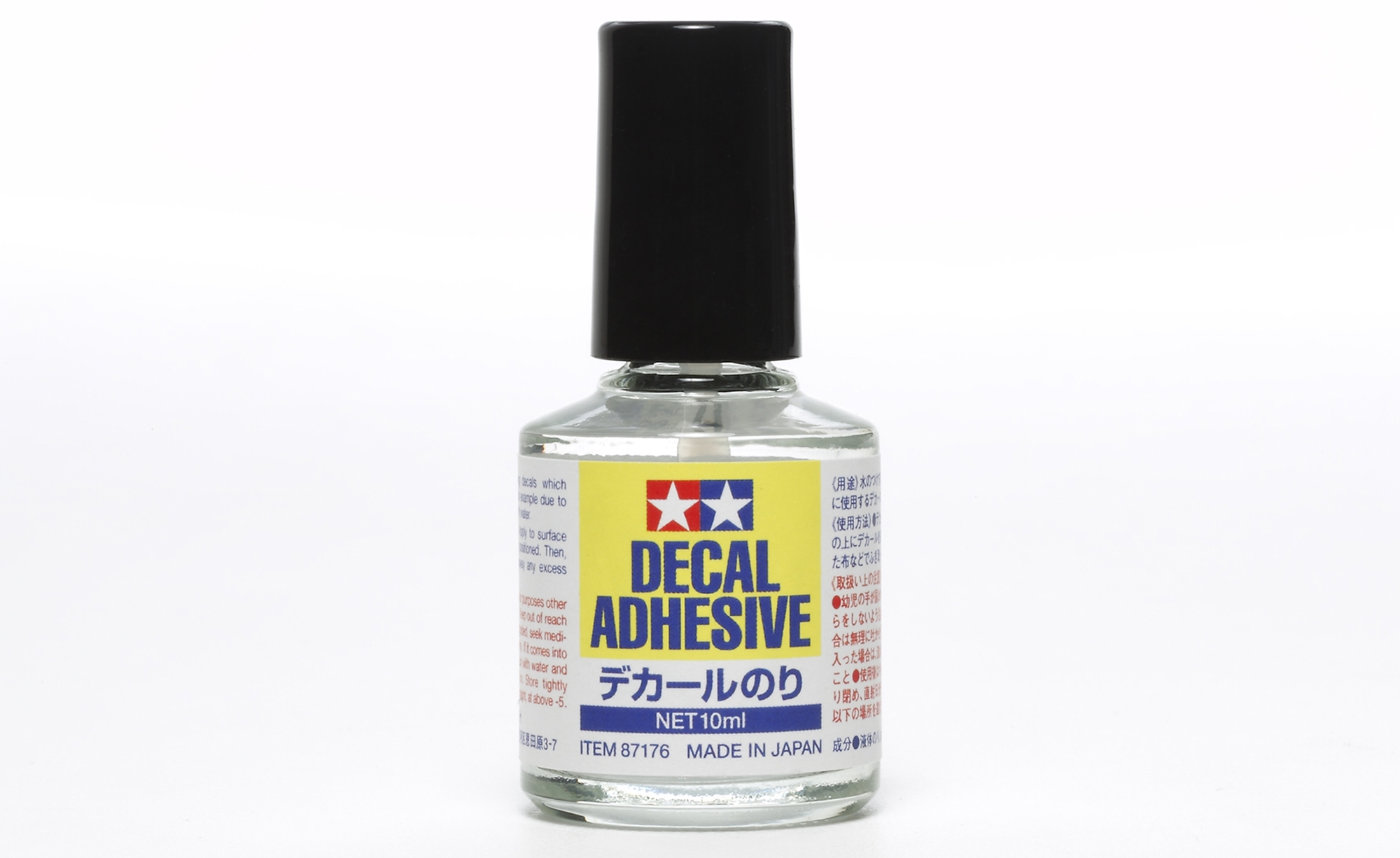 'Decal Adhesive' - Das Haftmittel für Nassschiebedekore die zu lange im Wasserbad eingeweicht oder vergessen wurden. Tragen Sie hierzu mit dem enthaltenen Applikator direkt auf das Modell 'Decal Adhesive' auf und platzieren das Dekor, das die Haftkraft verloren hat. Nach dem Aufbringen des Dekors kann das überschüssige Haftmittel mit Wasser wieder entfernt werden.