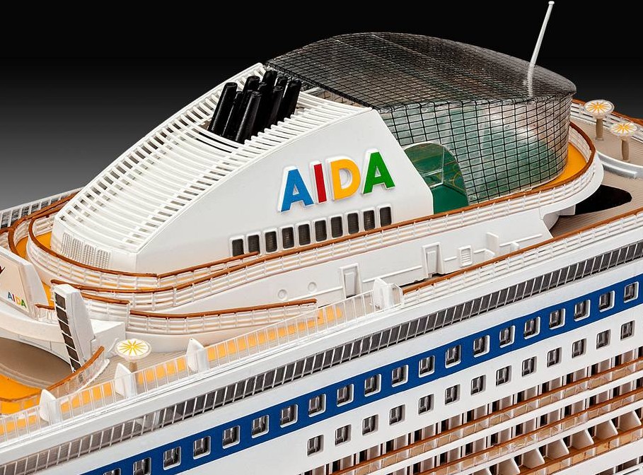 - Detaillierter Schornstein mit ausgeprägtem AIDA Schriftzug