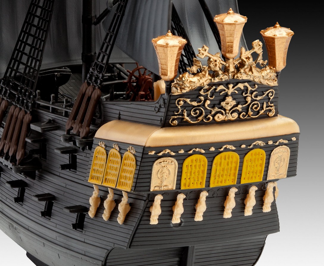 Modellbausatz der legendären Black Pearl, dem Schiff von Captain Jack Sparrow aus der Filmreihe FLUCH DER KARIBIK. Im fünften Teil SALAZAR'S RACHE steht Jack dem furchterregenden Captain Salazar gegenüber, der jeden Piraten auf offener See töten will.