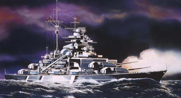Die Bismarck, das Flagschiff der deutschen Kriegsmarine, war neben der Tirpitz das größte deutsche Kriegsschiff und hatte 50.900 t Wasserverdrängung sowie 2.092 Mann Besatzung. Am 24.08.1940 in Dienst gestellt, lief sie am 18.05.1941 zur Operation Rheinübung aus. Zusammen mit der Prinz Eugen wurde Sie jedoch frühzeitig von der britischen Luftaufklärung entdeckt. Beim Zusammentreffen mit der Hood wurde diese am 24.05.1941 von der Bismarck versenkt. Nach einer langen Verfolgung erhielt sie am 26.05.1941 einen Flugzeugtorpedotreffer und wurde von den britischen Schlachtschiffen King George V und H.M.S. Rodney gestellt. Am 27.05. versenkt die eigene Mannschaft die Bismarck 490 km vor der französischen Küste.