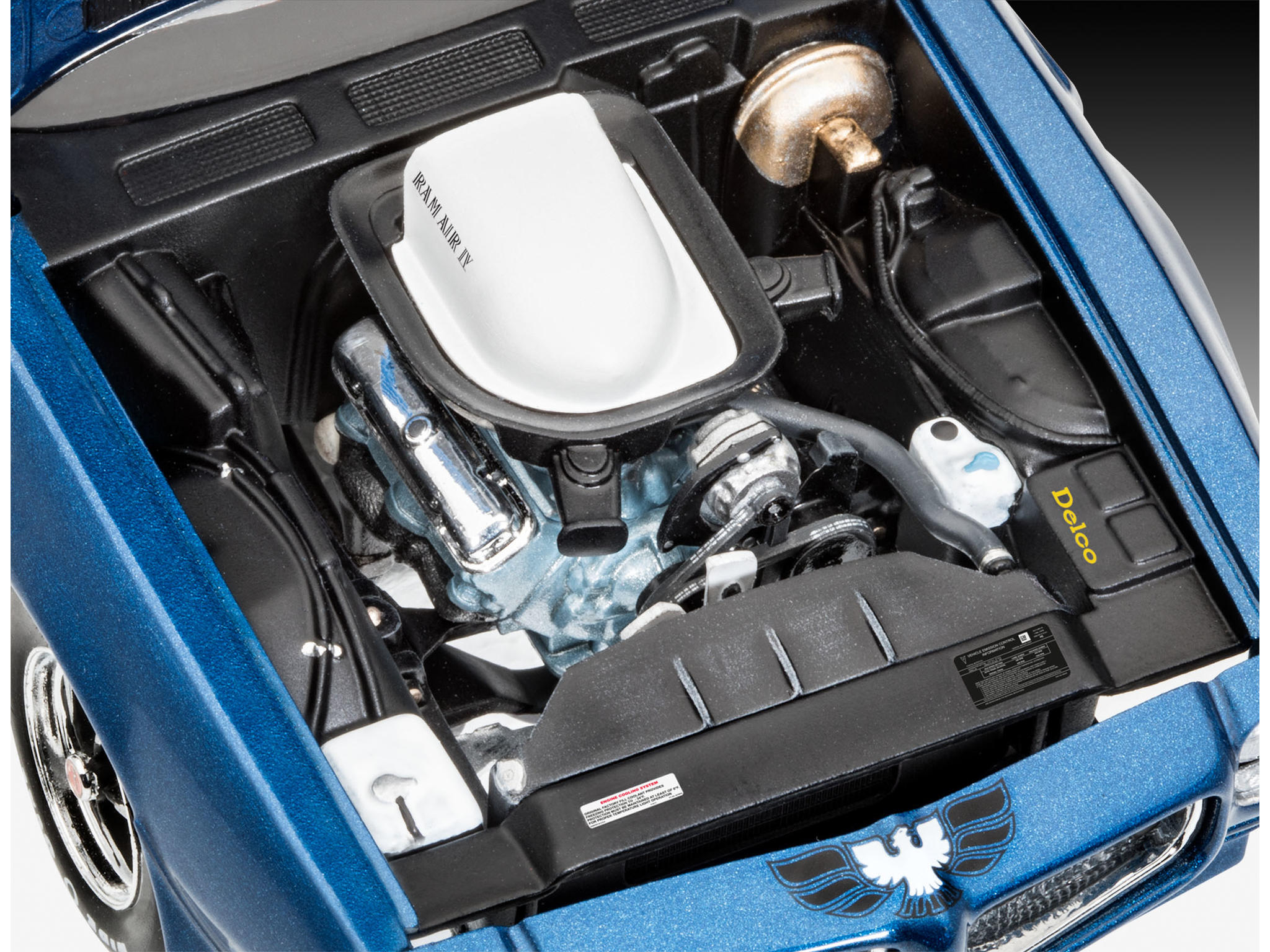 Modellbausatz zu dem Firebird, Pontiacs Beitrag zur Gattung der Pony Cars. Die 1970 erschienene, neu entworfene 2. Generation wurde nur als Coupé angeboten. - Mehrteiliger V8-Motor - Bewegliche Motorhaube - Diverse Chromteile - Wahl zwischen zwei Bemalungsvarianten - Abziehbild mit diversen Kennzeichen (D, A, NL, B, F, GB, I, CH, USA)
