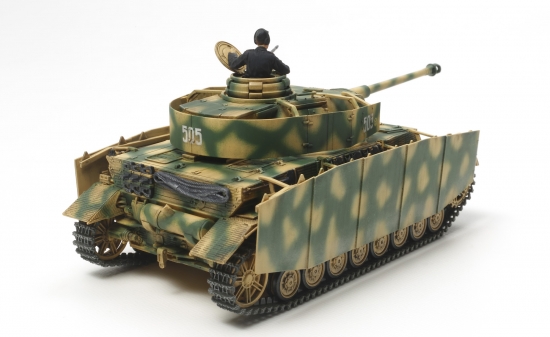 Das Standmodell ist eine Nachempfindung des spät produzierten Panzer IV der Variante H. Der Panzer IV diente den deutschen Streitkräften während des kompletten zweiten Weltkriegs und war dort in all seinen Varianten eine gefürchtete Waffe. Die Variante H des Panzer IV war mit einer 75 mm Kanone und einer Rüstungs-seitenschwelle ausgestattet. Die TAMIYA Modellbaukastenversion besticht durch hohe Passgenauigkeit als auch durch Detailtreue.