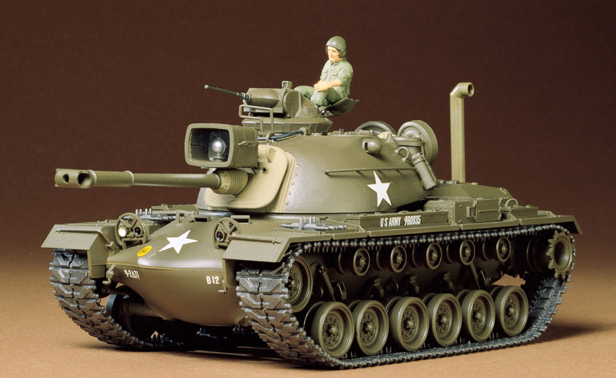 Der M48A3 Patton wurde in Vietnam eingesetzt. Seine Bewaffnung besteht aus einer 90mm M41 Kanone, einem koaxialen 7,62MG und einem 12,7MG auf der Kommandantenkuppel. Der Antrieb erfolgt durch einen Continental V12 AV-1790 Motor mit 865 PS. Die Geschwindigkeit auf der Straße liegt bei 48 km/h.