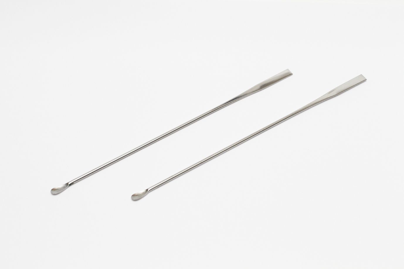 This stainless steel tool is designed for stirring bottled paints, and for blending different color shades. One end is shaped like a small spoon, while the other is flat, like a spatula. Tool length is 15cm. Includes two stirrers.
