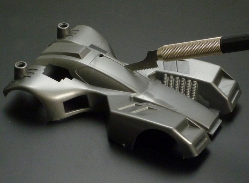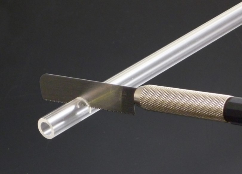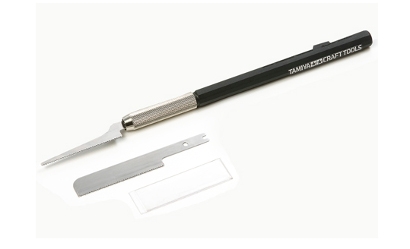 This handy tool is perfect for modifying plastic models or Mini 4WD machines, as well as woodcraft. Its blades are slightly thicker than Item 74018 Mini Razor Saw and therefore less prone to distortion or warping. The item includes 2 blades of different width, and features fine teeth which enable it to cut through a variety of materials while leaving a smooth finish. The 2 blades can be inserted into the included plastic grip, which features the Tamiya logo and "TAMIYA CRAFT TOOLS" in printed lettering.