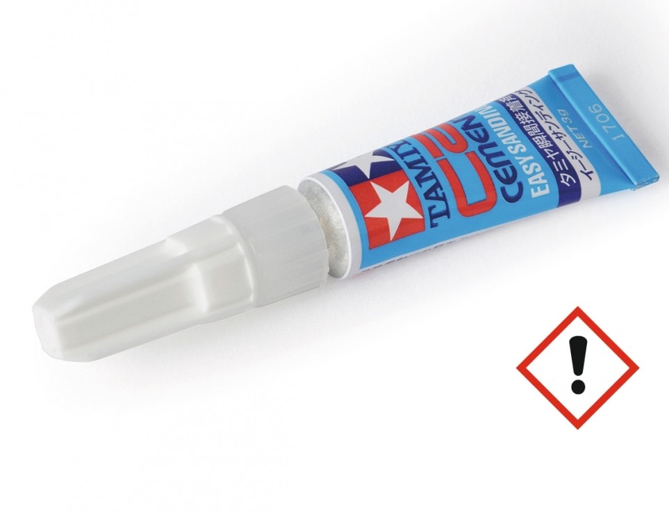 Kleine und knifflige Teile lassen sich hervorragend mit dem TAMIYA CA Cement 'Easy Sanding' befestigen und verkleben. Der überschüssige Klebstoff, sobald dieser getrocknet ist, lässt sich leichter abschleifen als herkömmlicher CA Sekundenklebstoff. Ein perfektes Finish und Schleifergebnis erreichen Sie durch die Verwendung der qualitativ hochwertigen TAMIYA Schleifpapiere und Schleifschwämme. Perfekte Verklebung erreichen Sie, wenn die Teile und Klebestelle öl-, fett- und staubfrei sind. Für einen punktgenauen Klebstoffauftrag sorgt die enthaltene Dosierspitze. Eignet sich hervorragend für die Verklebung von folgenden Materialien: Photoätzteile, Hartplastik, Metall, Holz und synthetischer Gummi. Nicht geeignet für: Polyethylen (PE), Polypropylen (PP), Nylon Fluorokunststoffe, Silikon, Glas Leder und Polystyreneschaum.
