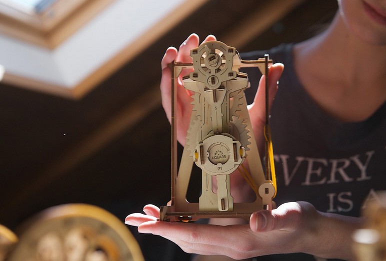 Das Modell ist mit einer die Schwingungsfrequenz steuernden Ankerhemmung, einem Gewicht, dem Hemmungsrad, einer Verzahnung, einem Gummiband sowie Sperrhaken und Sperrklinke ausgestattet. Letztere reduzieren Funktionsfehler. Das Modell verfügt über verschiedene Mittel zur Steuerung der Schwingungsfrequenz: das Gewicht des Pendelkörpers, die vertikale Position des Gewichts am Pendel sowie die Spannung des Gummibands.
