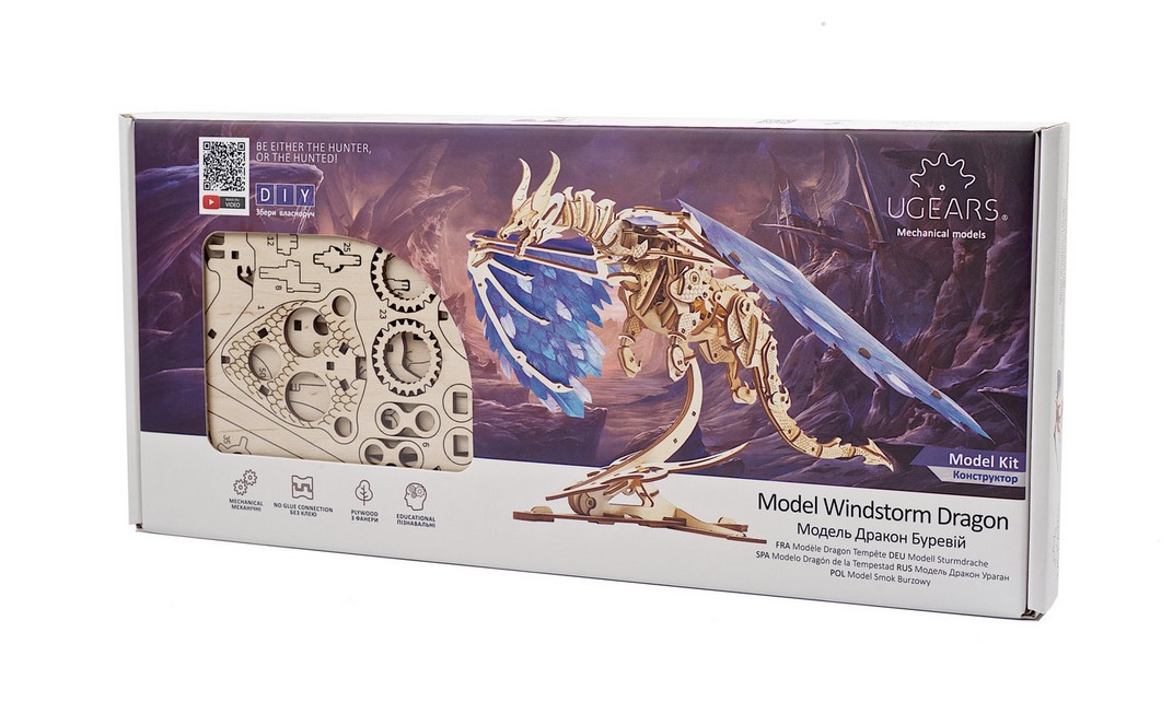 Wie alle Ugears-Modelle besteht auch dieser Modellbausatz aus hochwertigem Holz und wird mit allem geliefert, was Sie zum Montieren benötigen. . Lösen Sie das mechanische Mysterium eines uralten Ungeheuers und werden Sie mit dem Modell Sturmdrache von Ugears ein echter Dragon Master. Zum Selberbauen oder als Geschenk, ein echtes Abenteuer!