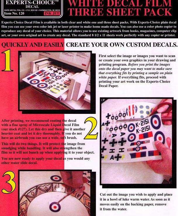 Modellbau BMF00120 White Decal Paper for InkJet 3 A4 Sheets