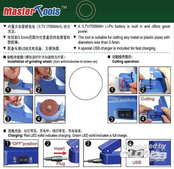 The tool is suitable for cutting any metal or plastic pipes with diameters less than 3.5mm.