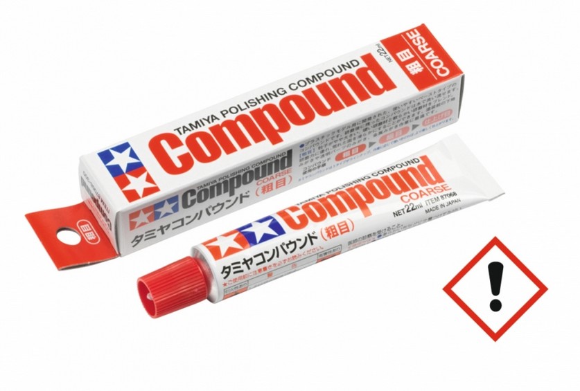 Diese pastenartige Politur wurde speziell für den Einsatz auf lackierten Kunststoffmodellen entwickelt. Relativ große Schleifpartikel, in Kombination mit der Paste, sind hochwirksam bei der Glättung/Politur von rauen Oberflächen bzw. beim Auspolieren von Lackeinschlüssen wie z.B. Staub-Partikel (aus der Grundierung oder aus der lackierten Oberfläche). Sollte es sich um einen starken Einschluss handeln, wiederholen Sie diesen Vorgang bis Sie das gewünschte Ergebnis erzielt haben. Zum Auftragen und zur Politur verwenden Sie die Original TAMIYA Poliertücher 300087090. Für weitere Anwendungen sind folgende TAMIYA Polishing Compounds erhältlich: 300087069 Polishing Compound Fine (bei Kratzern und verkratzten transparenten Teilen). 300087070 Polishing Compound Finish (feine Partikel / auspolieren von geringfügigsten Einschlüssen / verleihen der letzten Lackschicht oder dem Klarlack einen besonderen Tiefenglanz). Vor weiterem Farbauftrag die Oberfläche unter fließendem Wasser abspülen und abtrocknen lassen.
