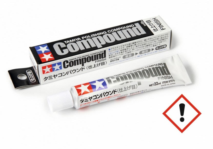 Diese pastenartige Politur verwendet extrem feinste Partikel, welche für die Finish-Politur glatter Oberflächen erforderlich sind (nach dem Farb- oder Klarlackauftrag) und verleihen Ihrem Modell ein höchst glänzendes Aussehen/Finish. Es kann auch zum Auspolieren von Kratzern aus transparenten Kunststoffteilen verwendet werden. Wiederholen Sie diesen Vorgang bis Sie das gewünschte Ergebnis erzielt haben. Zum Auftragen und zur Politur verwenden Sie die Original TAMIYA Poliertücher 300087090. Für weitere Anwendungen sind folgende TAMIYA Polishing Compounds erhältlich: 300087068 Polishing Compound Coarse/Grob (bei starken Lackiereinschlüssen). 300087069 Polishing Compound Fine (feine Partikel / auspolieren von geringfügigsten Einschlüssen / verleihen der letzten Lackschicht oder dem Klarlack einen besonderen Tiefenglanz). Vor weiterem Farbauftrag die Oberfläche unter fließendem Wasser abspülen und abtrocknen lassen.