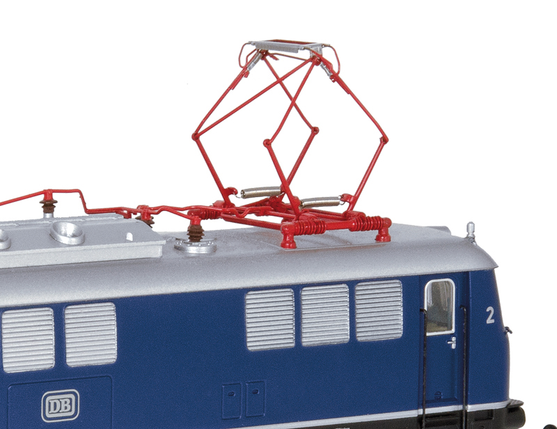 Erstmalig in Epoche 4 bei Liliput, Lokmodell serienmäßig mit Liliput-Kurzkupplungen, Dreilicht-Spitzensignal, Heizscheiben und Indusi. Besonderheiten: Silberfarbene Seitenlüfter und vorbildgerechte Dachstromabnehmer mit einer Diagonalstrebe und einem Zweifachschleifstück.