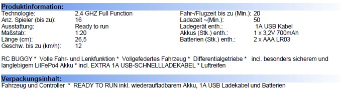 Carrera RC Slasher 2.0 - Carrera RC Buggy - Mit Top Speed über die Piste - ca. 26,5 cm lang - ab 6 Jahren Starte mit der roten Rakete durch Mit dem schnittigen Rennbuggy Carrera RC Slasher 2.0 bist du der Held auf jeder Rennpiste. Seine Luftreifen sorgen für Extra-Grip, wenn du mit ihm über die Outdoor-Piste im Garten, im Park oder auf dem Spielplatz flitzt. Mit diesem Renner ist dir die Aufmerksamkeit deiner Freunde sicher. Bei heißen Rennen lässt du sie allerdings weit hinter dir. Schnittige Rennaction für den Garten und im Park Das ca. 26,5 cm lange Modell ist für kleine Rennfahrer ab 6 Jahren geeignet und nimmt sie mit zu spannenden Rennen mit bis zu 12 km/h. Ob die Outdoor-Fans über den Asphalt oder die Offroad-Piste flitzen möchten, bleibt dabei ganz ihnen überlassen. In leuchtendem Rot ist der Slasher ein echter Hingucker! Bis zu 20 Minuten lang begeistert er dank des langlebigen LiFePo4 Akkus die Zuschauer, bevor er für 50 Minuten eine Pause am USB-Ladekabl einlegt. Geladen wird mithilfe des USB-Ladekabels auch bequem von unterwegs über Laptop oder Powerbank.
