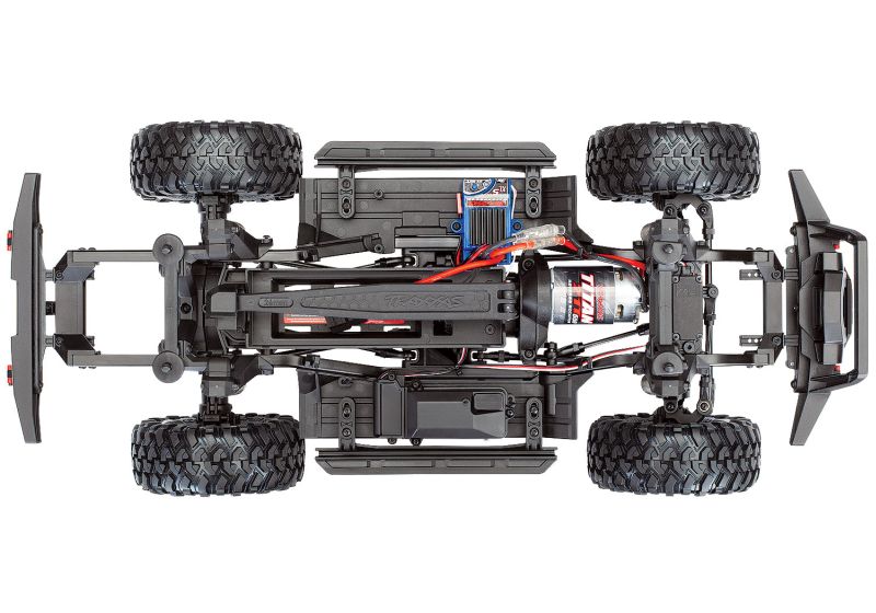 Der TRX-4 erreicht durch seine innovativen Portalachsen mehr Bodenfreiheit als andere Fahrzeuge. Die Räder sind durch eine Getriebeuntersetzung am äußersten Punkt tiefer positioniert. Das Geländegenie verfügt über ein kurz übersetztes Getriebe sowie gesperrte Vorder- und Hinterachsen die ihn selbst im schwierigsten Gelände alle Hindernisse überwinden lassen.